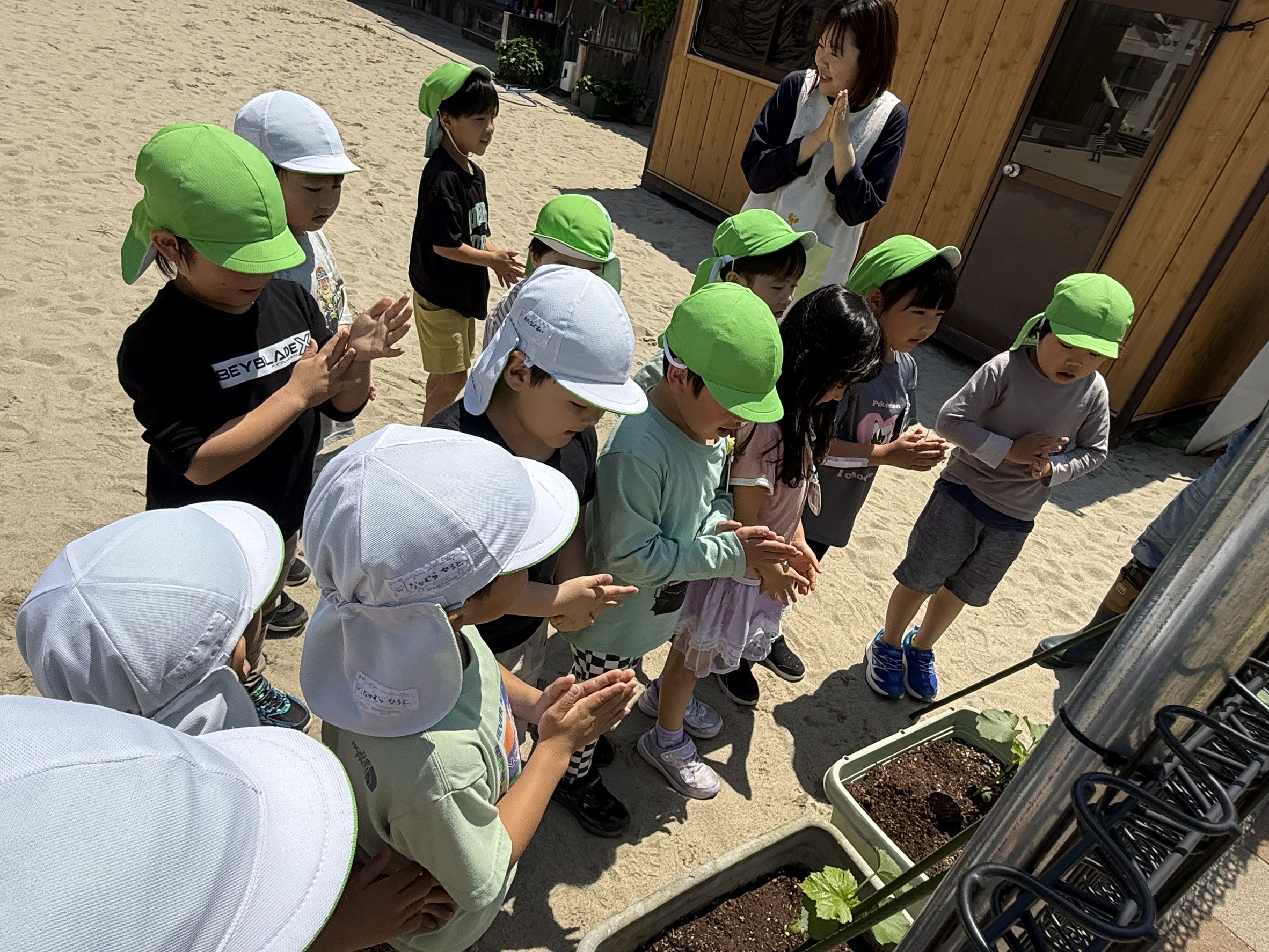 最後は、オクラが実るよう、みんなで魔法のおまじないをかけました★