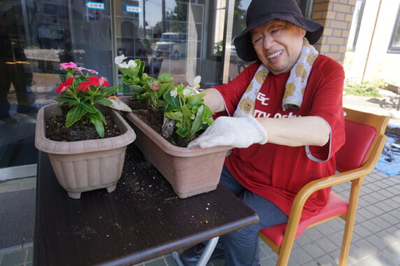 また、参加されたご利用者からは「花植え楽しいよ」と笑顔で話されていました。