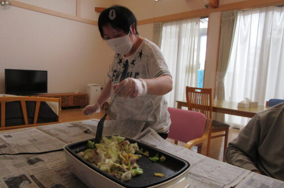 こちらでは皆さんで協力してやきそば作りを行いました♪