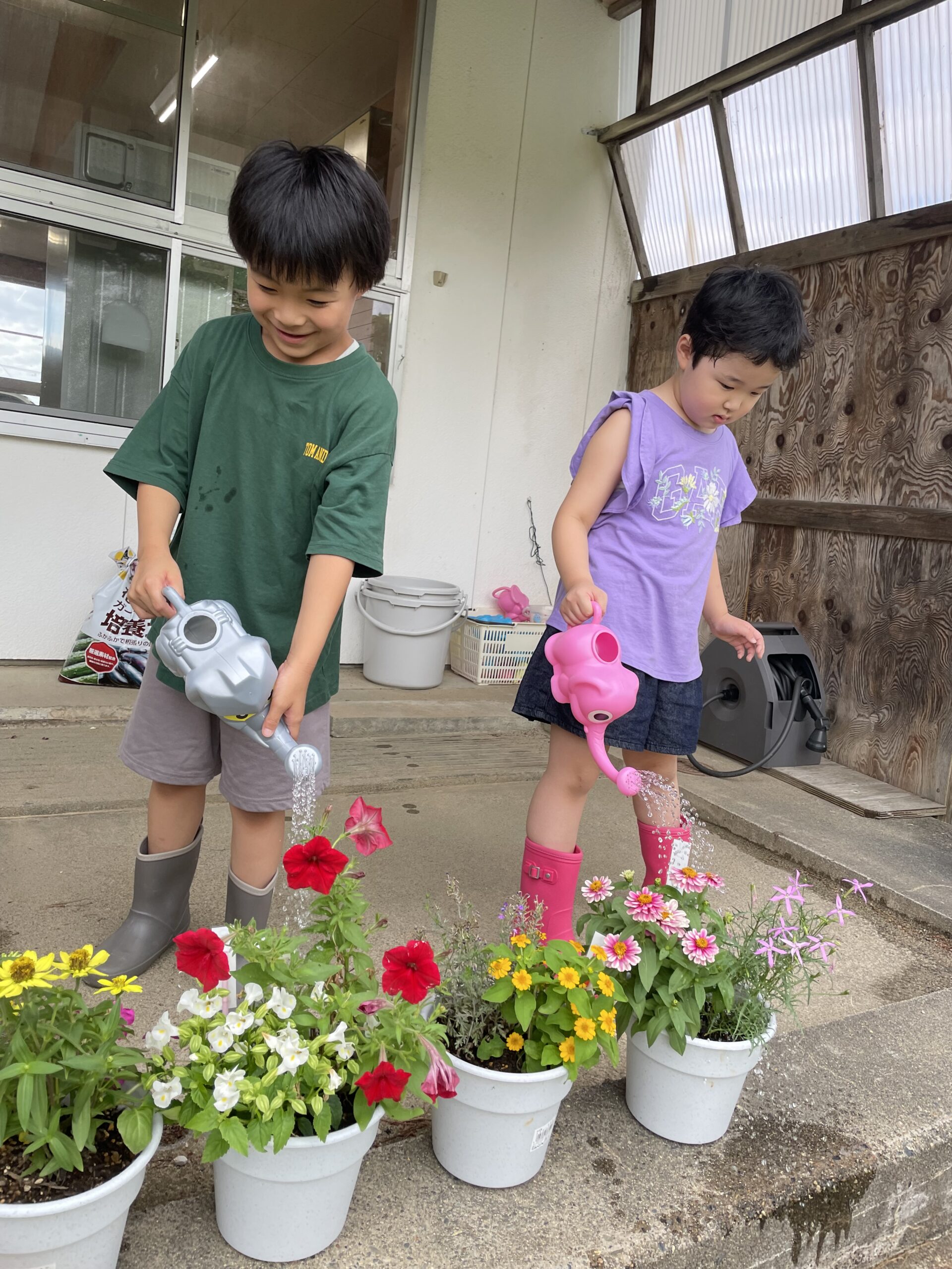 毎日みんながお水をあげてくれています!そのおかげで暑い中でも元気いっぱいに咲いています!