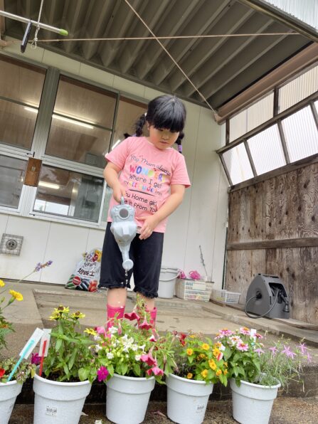 先日みんなでお花屋さんへ花の苗を買いに行きました!1人2個選んでもらいそれぞれの鉢植えに植えてもらいました🌸