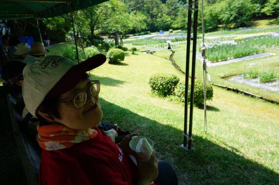 気温が高い日は設置されているテント内でお茶を飲みながらのあやめ見物になりました。
