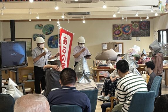 「地域交流室に避難しましょう。」皆さん、職員の言葉を良く聞き、上手に避難していました。