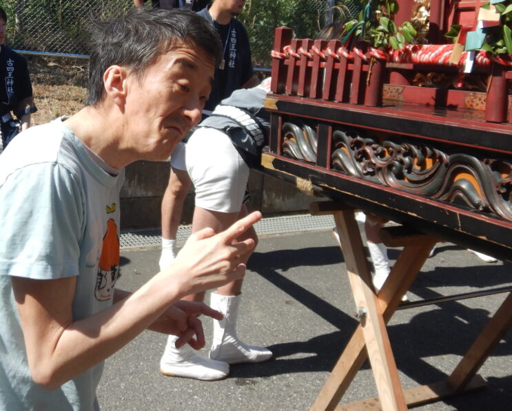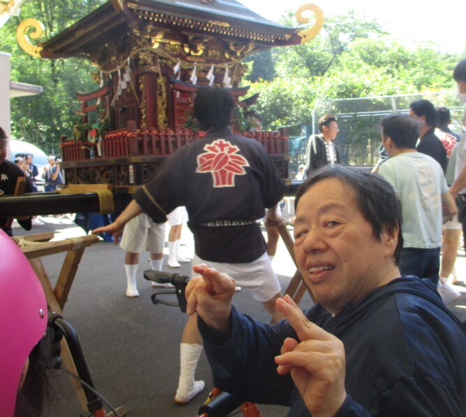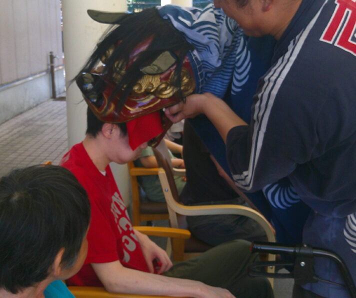 地域の方々がスマイルキッズいじみの(旧五十公野保育園)近くにある古四王神社からお神輿を担ぎ、緑風園にも来園してくださりました!