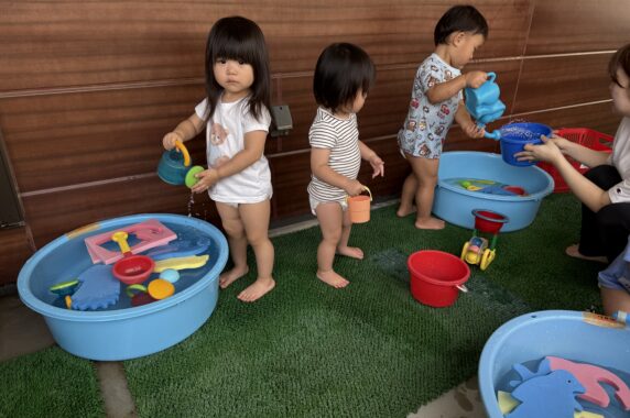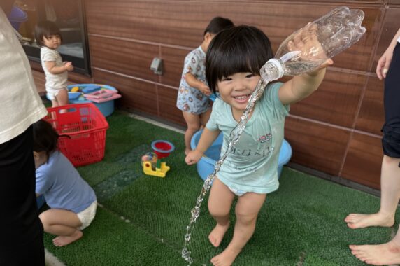 水鉄砲やペットボトルに水を入れることに夢中でした😊