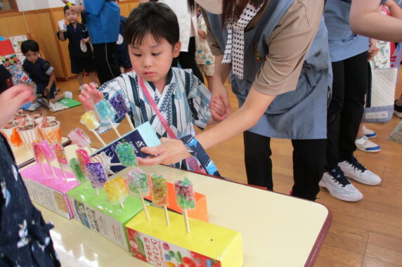 8月26日、にしぞのこども園と一緒に『おまつりごっこ』をしました☺