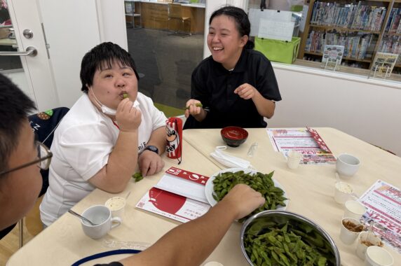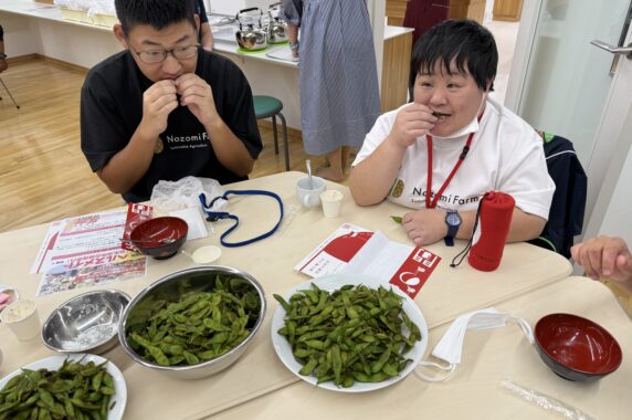 10月10日(金)イクネス新発田にて、敬和学園大学様の主催による「一人娘の枝豆試食会」が行われ、当法人役員をはじめ、のぞみふぁーむ、夢ある小路の利用者の皆さんもご招待いただき参加してきました♪