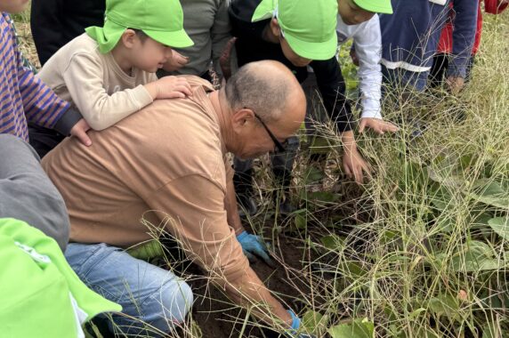 用務員さんにどのように収穫するのか、お話をよく聞いて、さつまいも堀りに挑戦してみました。