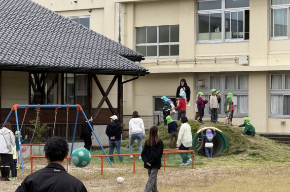 今日は肌寒い日でしたが、子どもたちは広い園庭で思い思いの遊びを