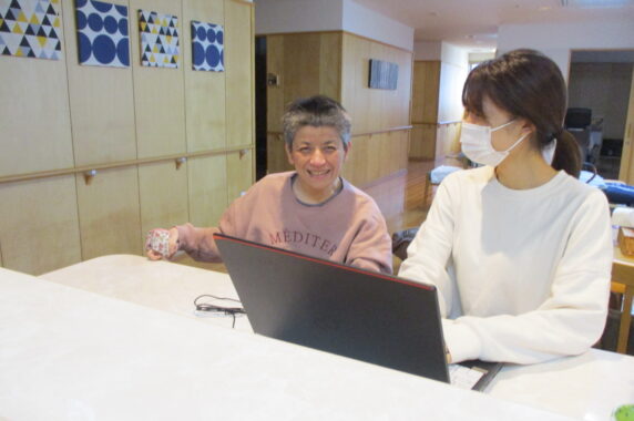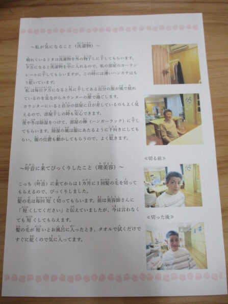 パソコンに打つ作業は職員が行いますが、書く内容や写真などはご自分で決められており、担当職員と話し合いながら二人三脚で文章を作成しています!