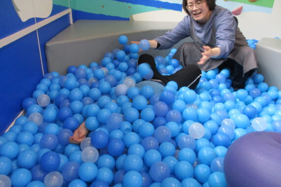 →ボールプールでかくれんぼ!!「もっとボールかけて~」