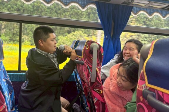 行きのバスの中からバスガイドさんのクイズ大会やカラオケで大盛り上がり!