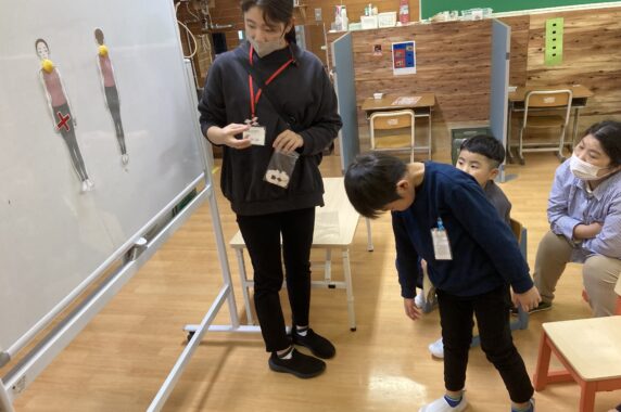 寸劇のあとに「急にお友達が抱き着いてきたらどんな気持ち?」と聞くと「びっくりする・・・」「いやだな・・・」と教えてくれました。