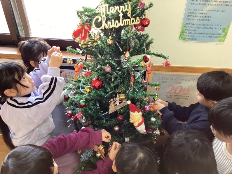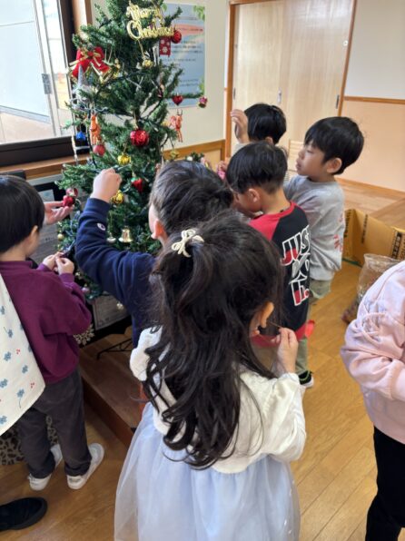 ツリーはクリスマス会当日まで飾ってありますので、送迎の際にぜひ子どもたちと一緒にご覧ください😊