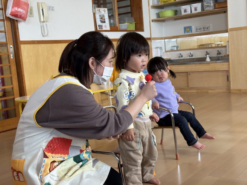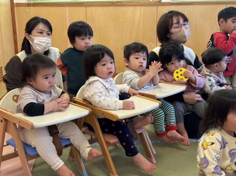11月のお誕生日会がありました。乳児クラスで11月生まれのお友だちは2人😊