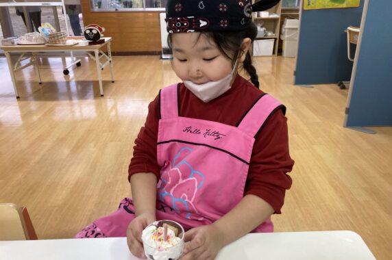 自分たちで作ったパフェをおいしそうに食べていました❤️