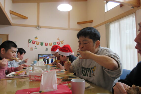 お昼はチキンやパエリアなどクリスマスランチでパーティーをしました!