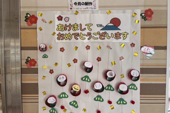 玄関には、みんなが作ってくれた『だるま』が迎えてくれています!