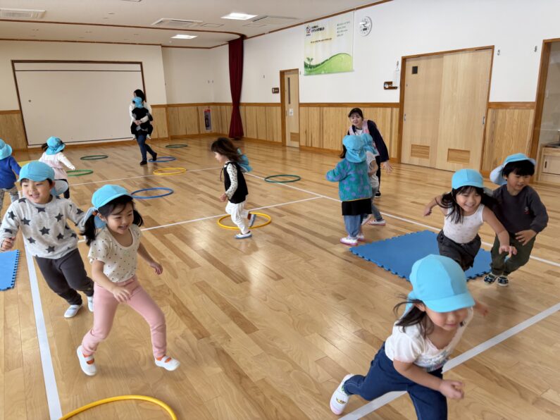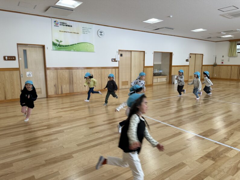 その後は、子どもたちから「やりたい!」と声が上がっていた色オニとリレーをしました。