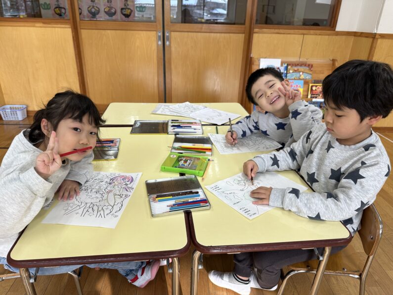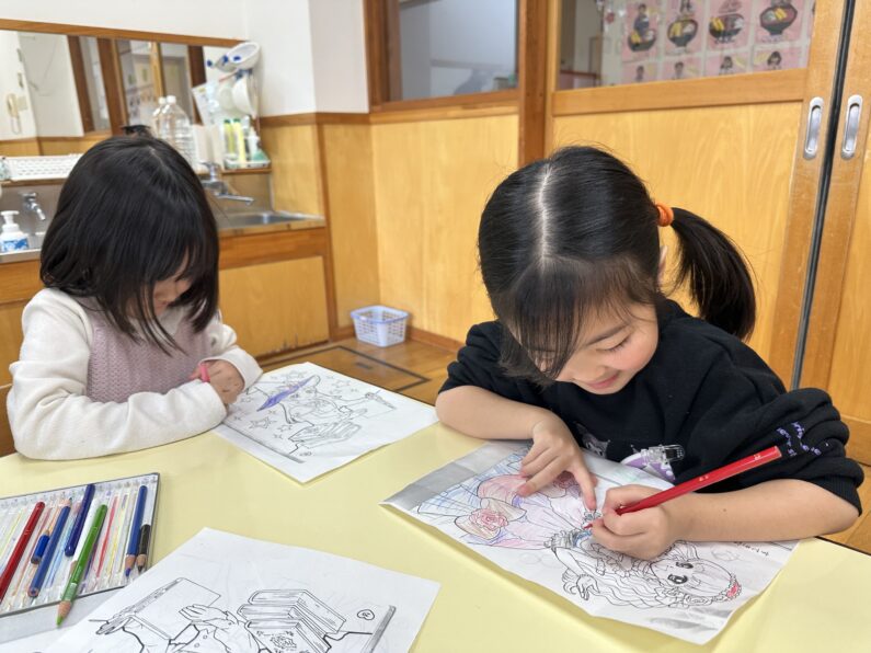 ぬりえでは、色を考えながら細かい部分まで丁寧に塗ろうとする姿が見られました✍