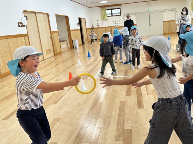 リレーでは、ピンクチームと黄色チームに分かれて「えいえいおー!」と気持ちを一つにして取り組み、友だちを応援する姿や最後まで諦めずに走る姿が見られました✨