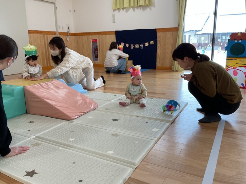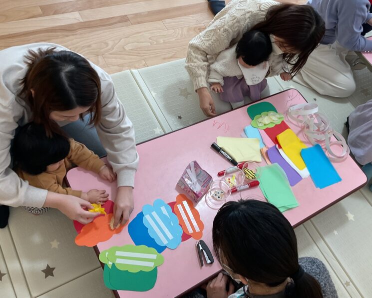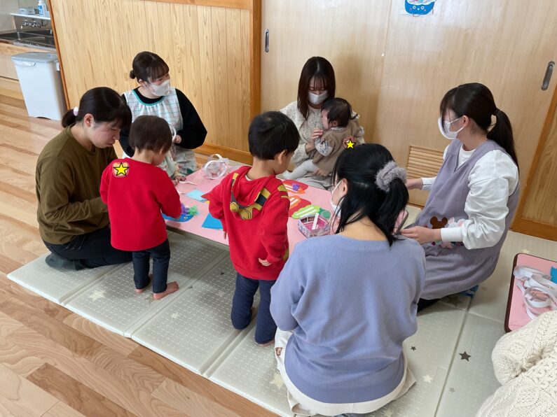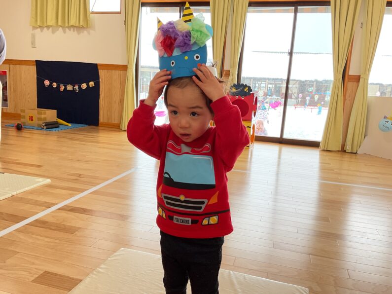 1月27日(火)にしぞのこども園の遊戯室では、子育て支援イベント「鬼のお面作り」「節分ごっこ」を楽しみました!6人のお友だちが遊びに来てくれましたよ♪
