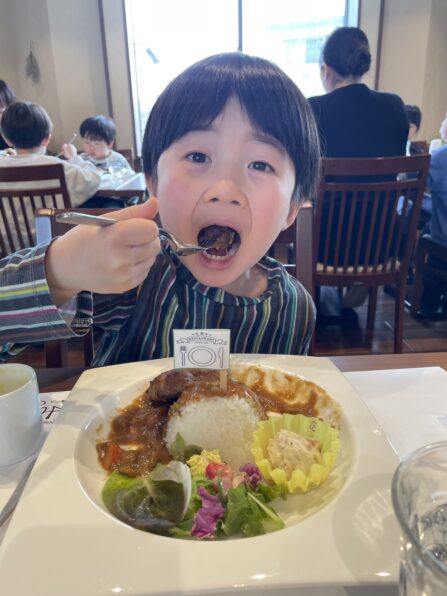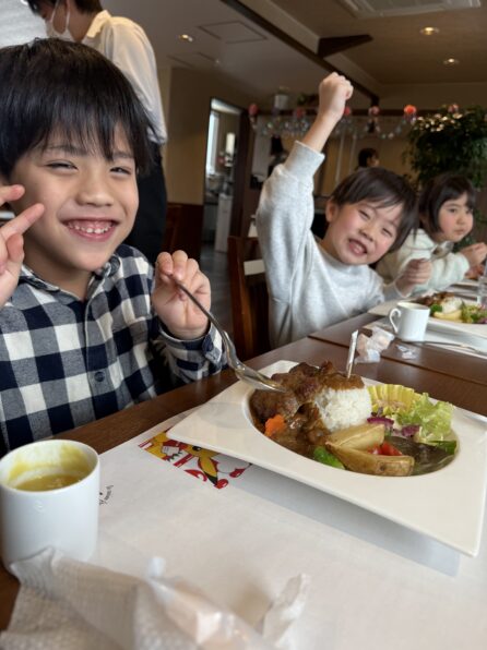 最後は、子どもたちが楽しみにしていた特別お料理✨「わ~かわいい💖」「おいしそう~」と目を輝かせる子どもたちです!! 素敵なお子様プレートとイチゴのデザート堪能しちゃいました!!