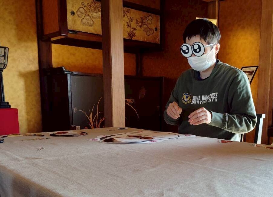 食後には、チームに分かれて福笑いを楽しみました!