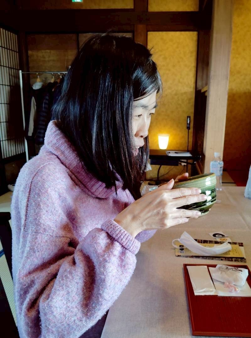 食後にはできたてのお抹茶と、新発田銘菓の「翁もなか」と「梅小まる」を召し上がりました。