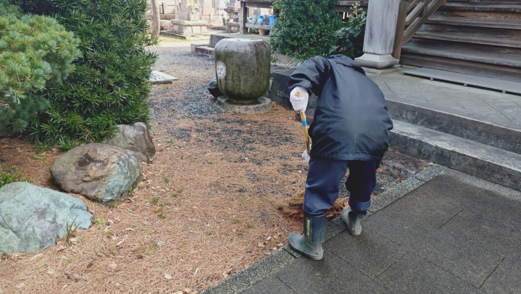 事業所近くにある本福寺さん境内の清掃実習にご利用者8名と職員1名で出掛けてきました。落ち葉や松ぼっくりを集めたり、ご利用者は清掃道具を上手に使用し、午前半日で作業を終了することが出来ました。次回は4月にお墓に供えられている仏花の回収作業等に伺う予定です。
