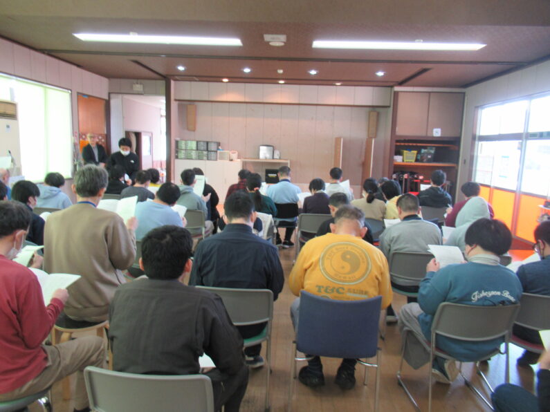 3月27日(金)に「次年度説明会」を開催しました。日課の変更や各作業班の担当職員、ご利用者の担当職員、モチベーションアップ活動の内容等の説明を行いました。
