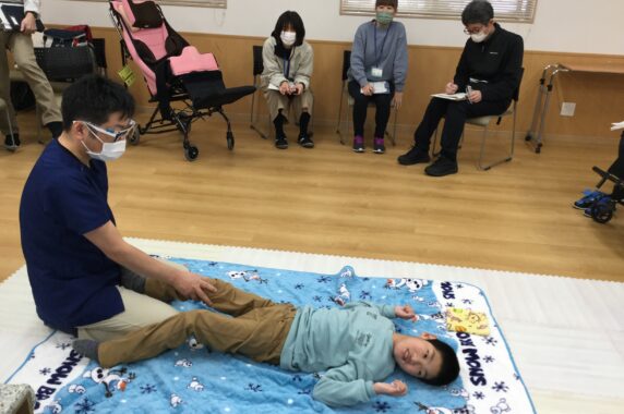 重症心身障がいのあるお子さんが活動を行う時に適した姿勢や、ご自身で身体を動かしていただきやすい方法、そしてなぜそういったことが大事なのかを学びました。