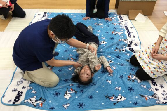 重症心身障がいのあるお子さんが活動を行う時に適した姿勢や、ご自身で身体を動かしていただきやすい方法、そしてなぜそういったことが大事なのかを学びました。