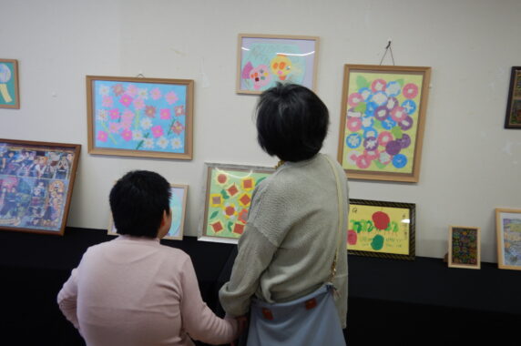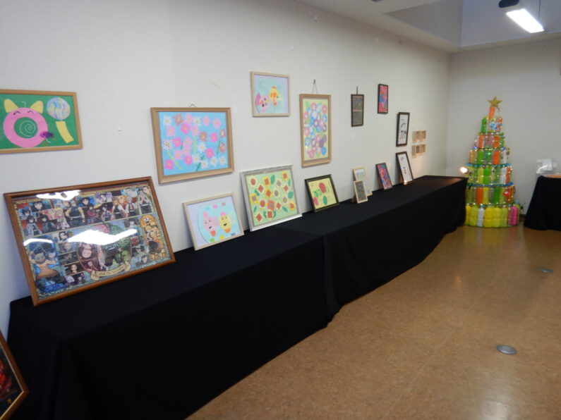 作品展示会では毎日の日中活動やアートワークなどで作られているアート作品がずらっと並びました。