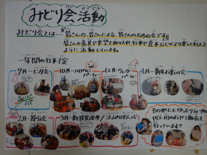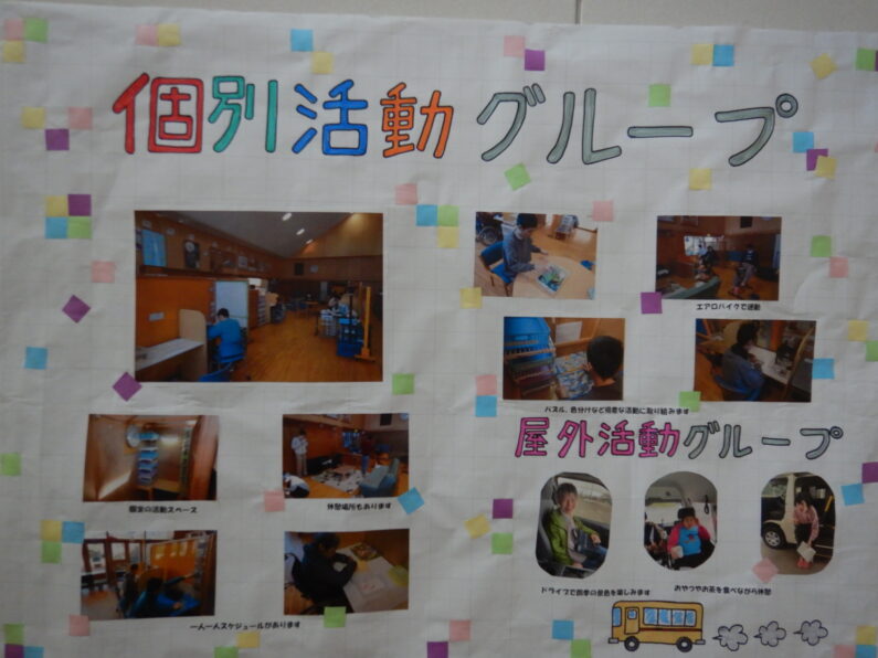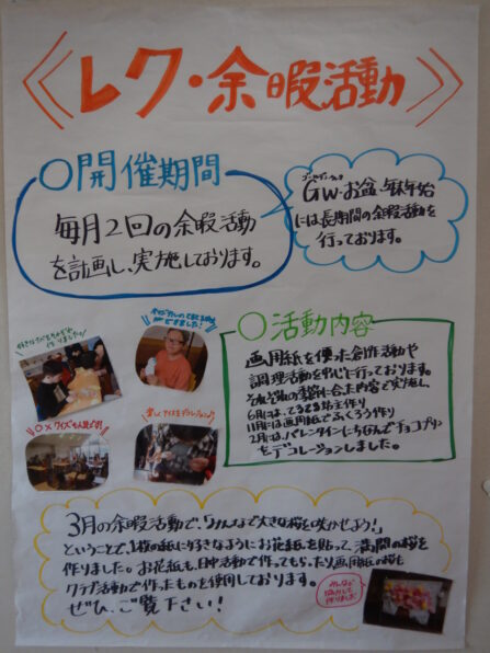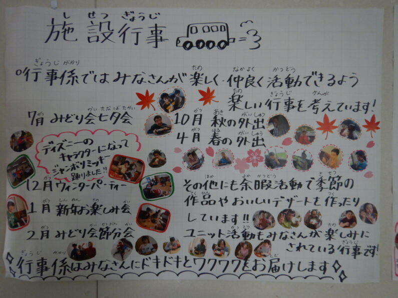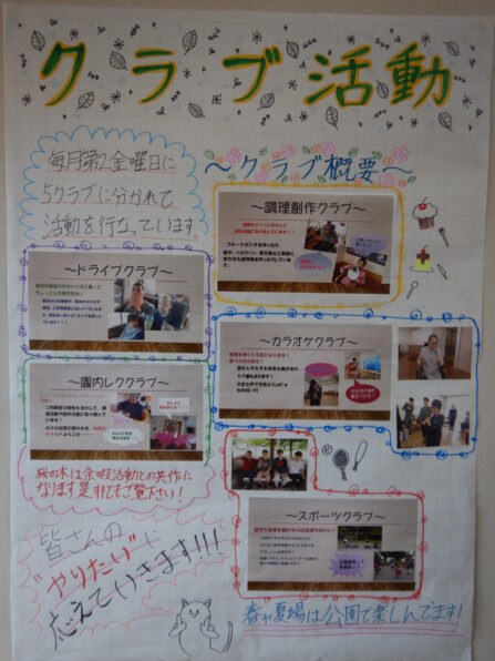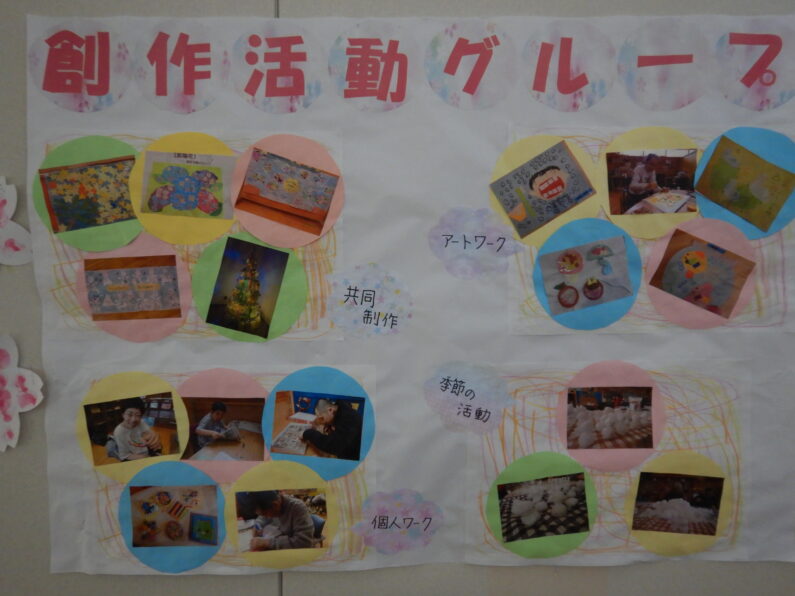 作品以外にも、日中活動の様子や、行事やクラブ活動など普段のご利用者の様子がよくわかるパネルも展示されていました。
