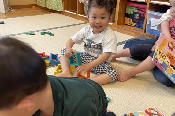 ソフト遊具(柔らかい素材の滑り台など)で思い切り身体を動かして楽しんだ後、積み木やままごと、絵本を見るなどのゆったりタイムでした♪