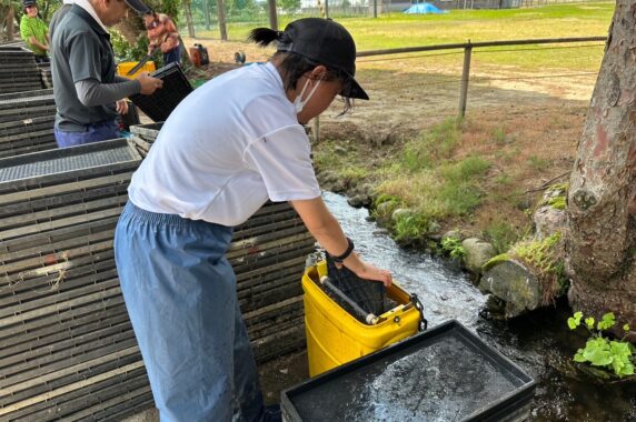 機械も使いながら手洗いと手分けをして作業します。