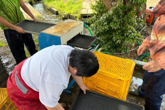 今週からアグリ竹俣さんで稲の苗箱洗いの作業を開始しました!