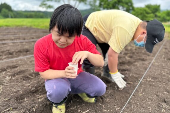 今年は、新発田竹俣特別支援学校の高等部の生徒の皆さんにもご協力をいただき、一緒に種蒔き作業を行いました。