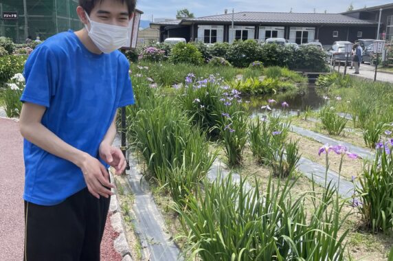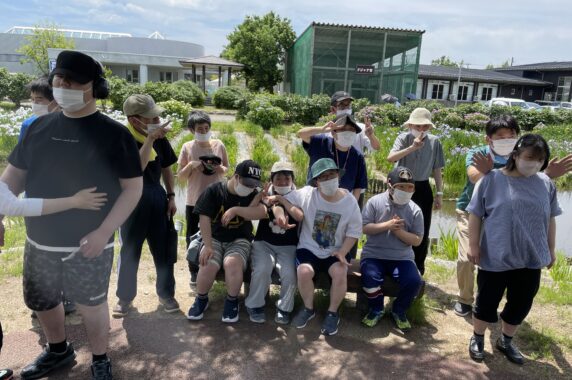 夏が近づき、少し暑い中でしたが、ご利用者の皆さんはあやめを鑑賞し、楽しそうに過ごされていました。