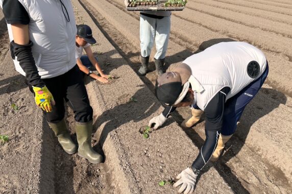 今回は植えたブロッコリーの苗は約7000本。おおよそ2反ほどの面積に2日間かけて作業を完了しました!