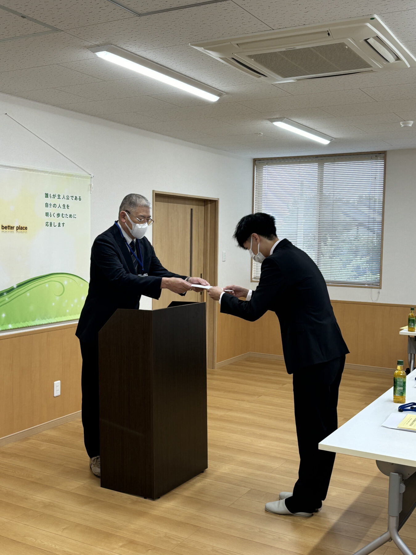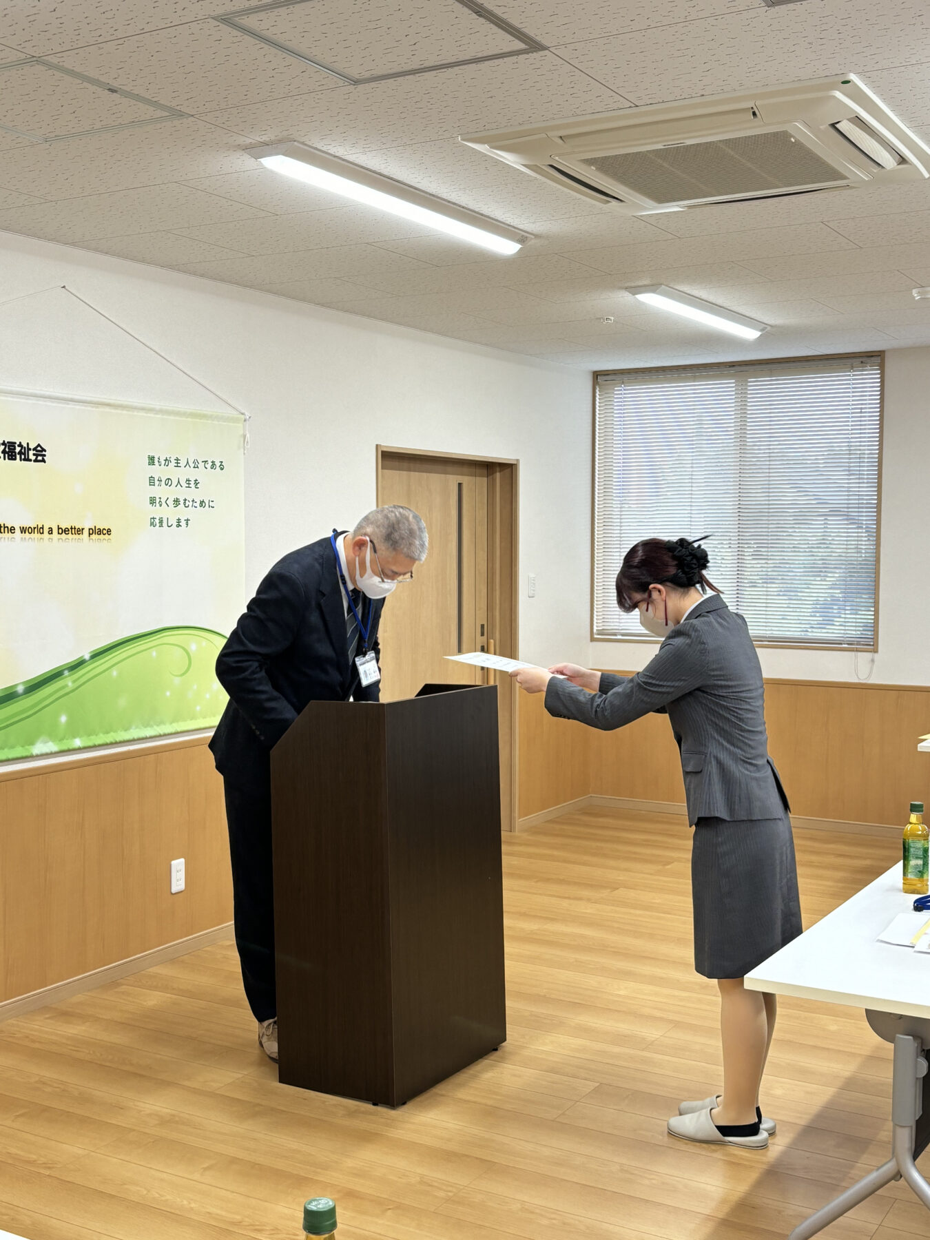 10月6日、さんさん館iにおいて内定式がとり行われました。令和6年4月に入職される6名の方へ、齋藤理事長より内定証書が授与されました。