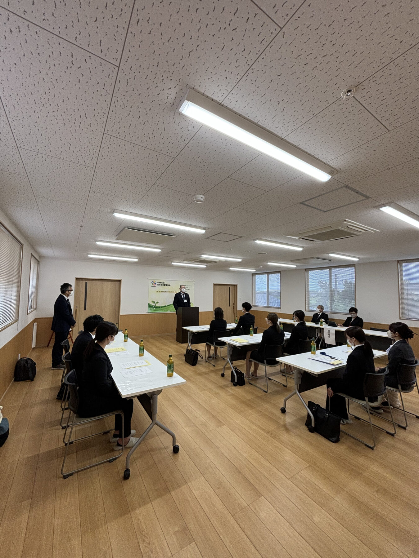 その後理事長から内定者のみなさんへ、「共感だけでなく“響感”し合い、若い力で法人に新しい風を」とのメッセージが贈られました。役員や先輩職員が見守る中、内定者のみなさんは引き締まった表情で耳を傾けていました。