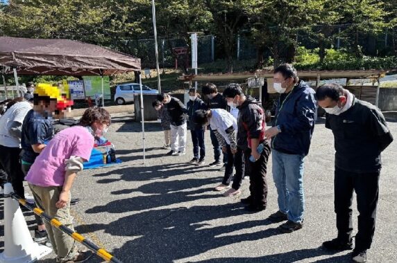 まずは、分校の生徒のみなさんと、のぞみふぁーむの利用者の皆さんで朝の挨拶から開始です。