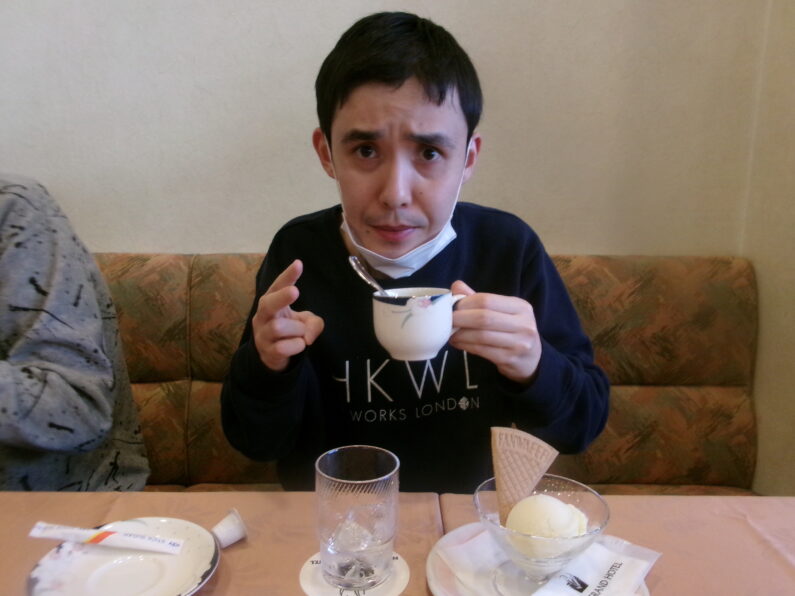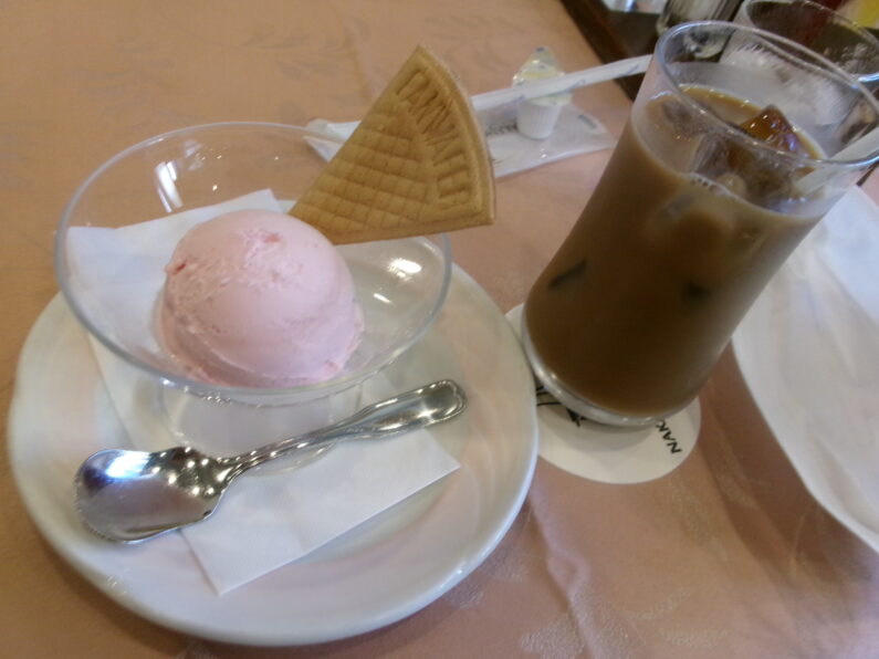 グランドホテル内“バロン”にてアイスとコーヒーのセットを楽しみました。 「とっても美味しいです♪」