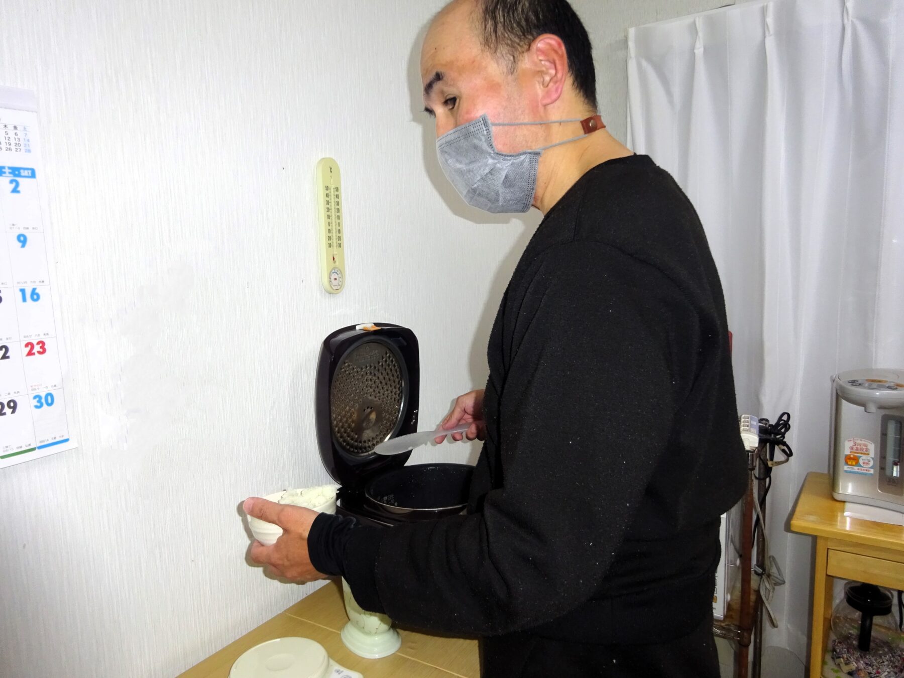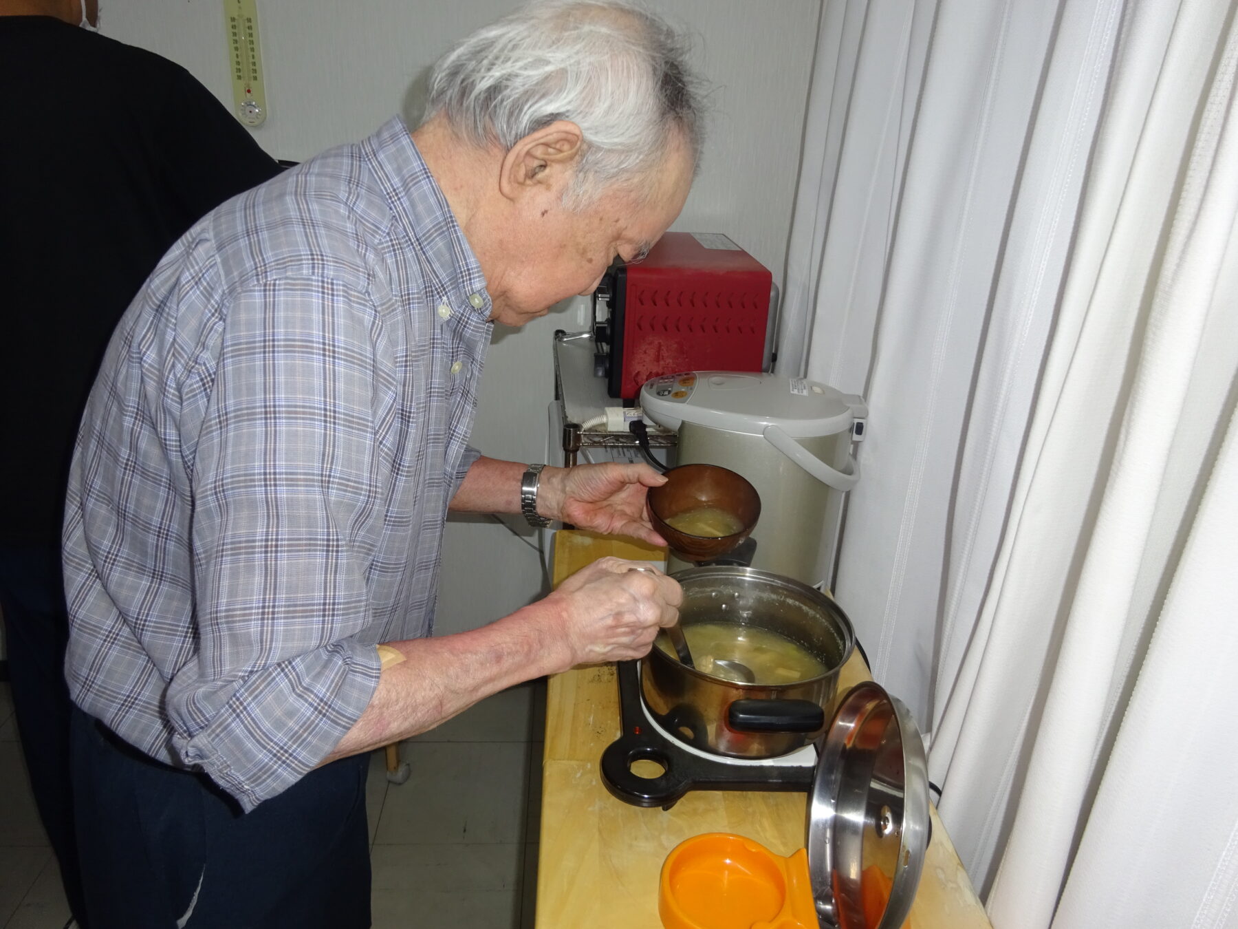 ご飯や味噌汁は皆さん、各自で盛っています。