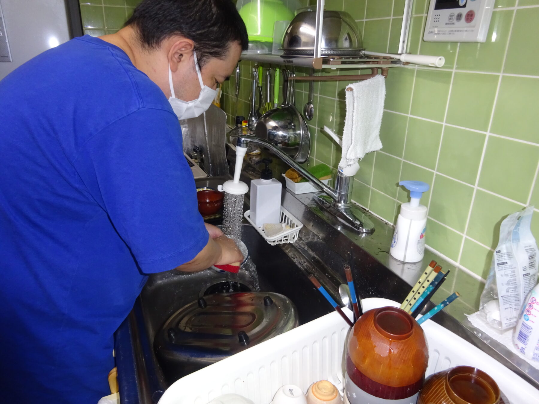 食後も、各自で食器を洗っています。