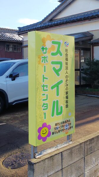 この度、御幸町にあるスマイルサポートセンターの看板デザインを新調しました!