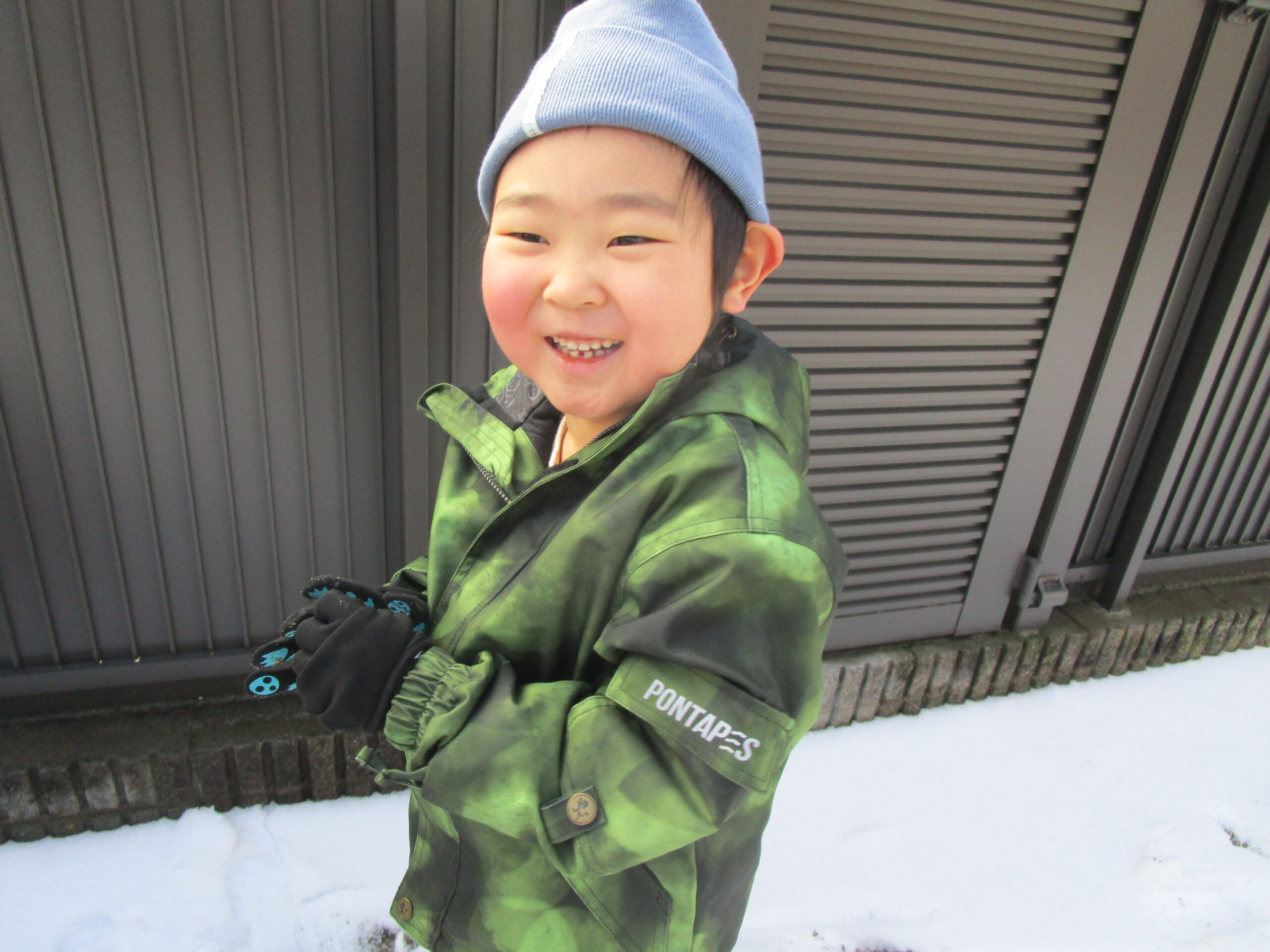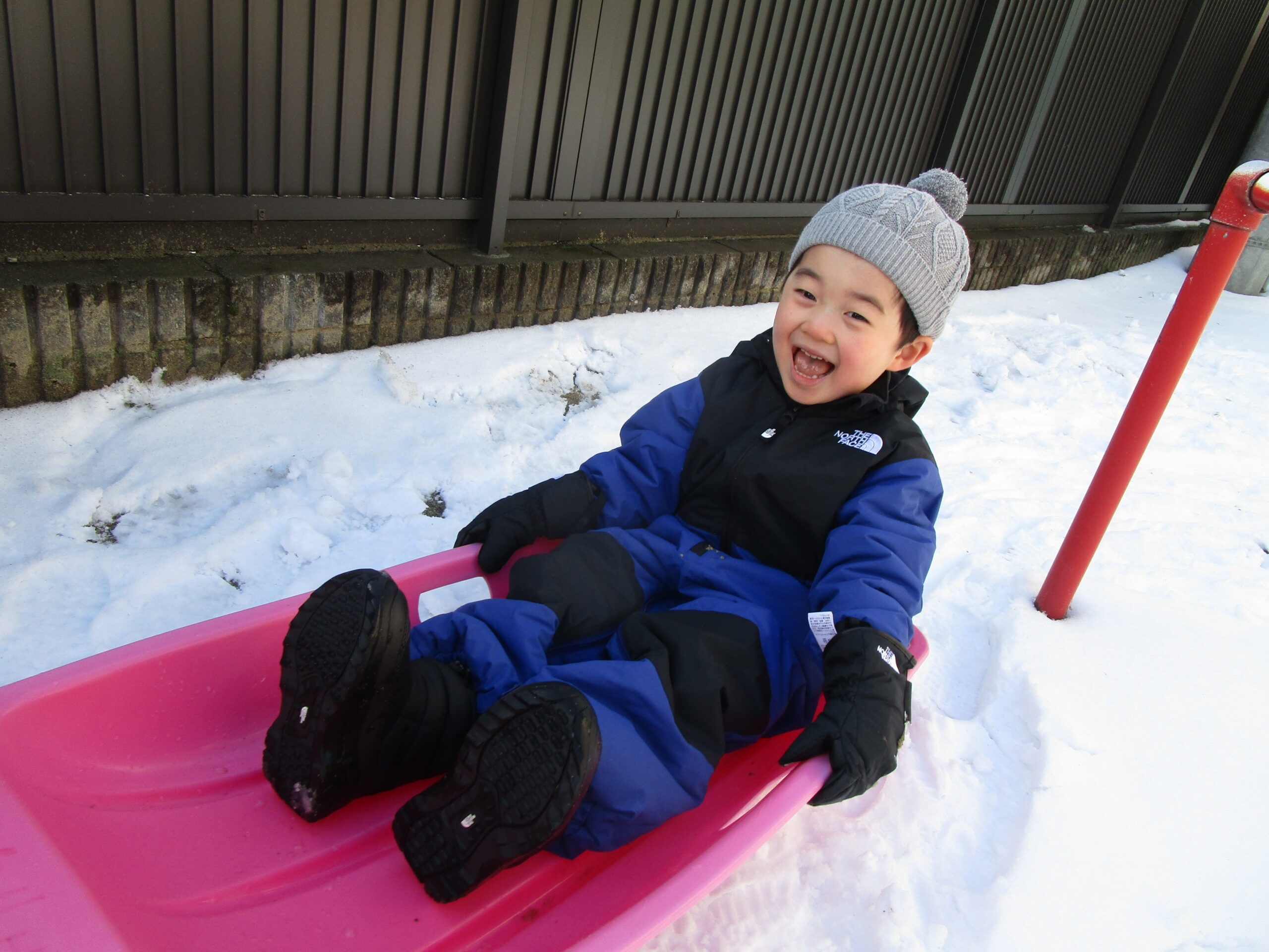太陽の光が雪にあたりきらきら光る中、子どもたちの笑顔も輝いています♡