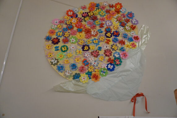 こんなに大きな花束が、あおの空の壁面を飾っています。